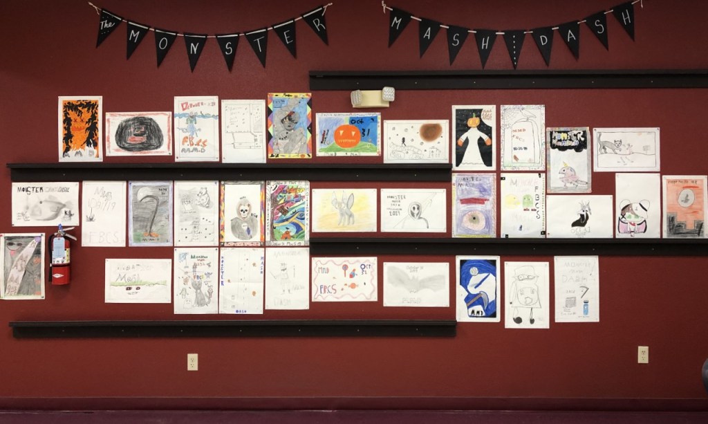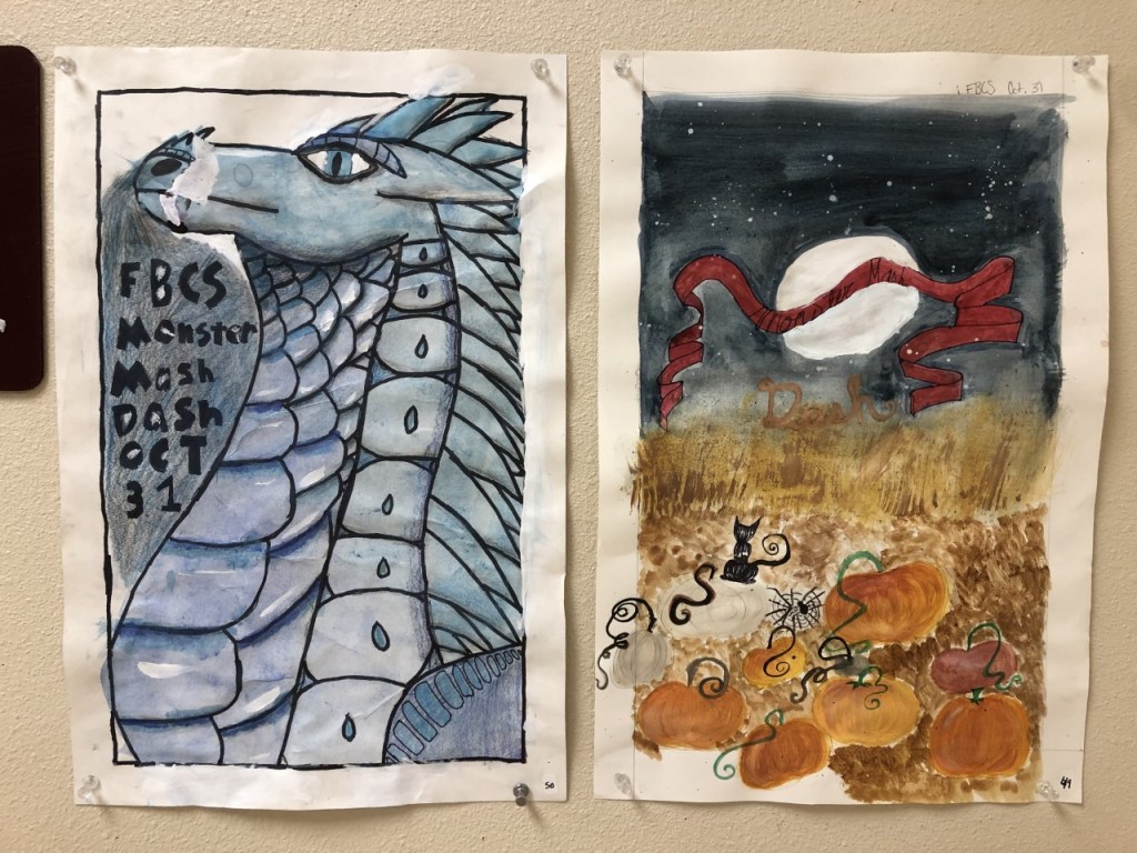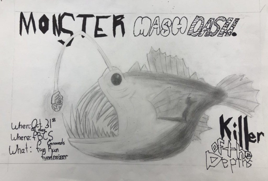 The winner of the 2019 Monster Mash Dash t-shirt/design contest, is Veda C. Judges chose her poster because of the cool graphic and attention to detail. Veda is an 8th grader who puts a lot of time into her art work.