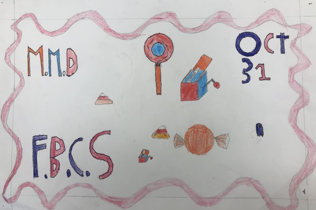 Here’s how it works: All students in the art program create a design. The lesson focuses on good graphic design/advertising in art. Student can then opt in to the design contest if they wish. Submissions are hung in the school lobby-without names. The judging is blind so that popularity or favoritism doesn’t interfere. The contest is open to all students and students can submit multiple entries.