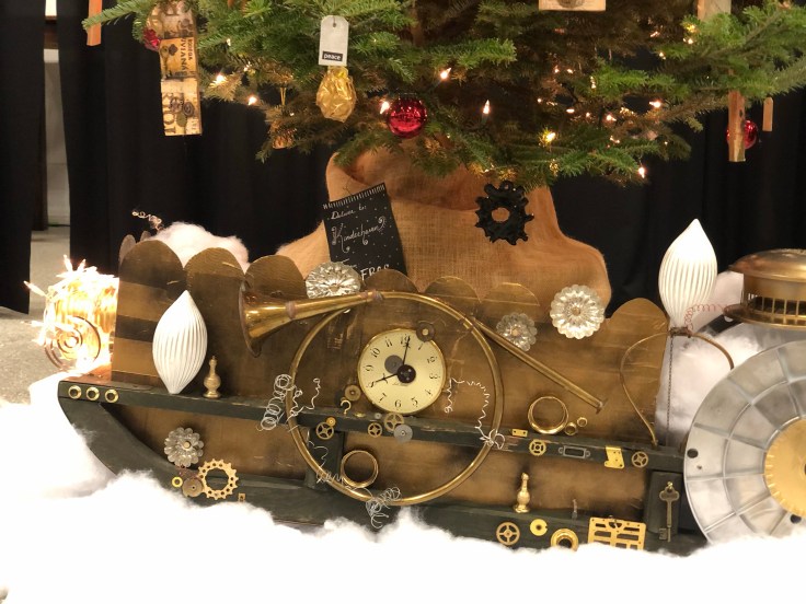 The Festival of Trees is a fun, holiday event in which local businesses curate a themed tree to be auctioned off. I’ve been decorating trees with my students since 2007. We’ve explored themes like values, buttons, the circus, the Renaissance and nature. Our theme this year: Steampunk.