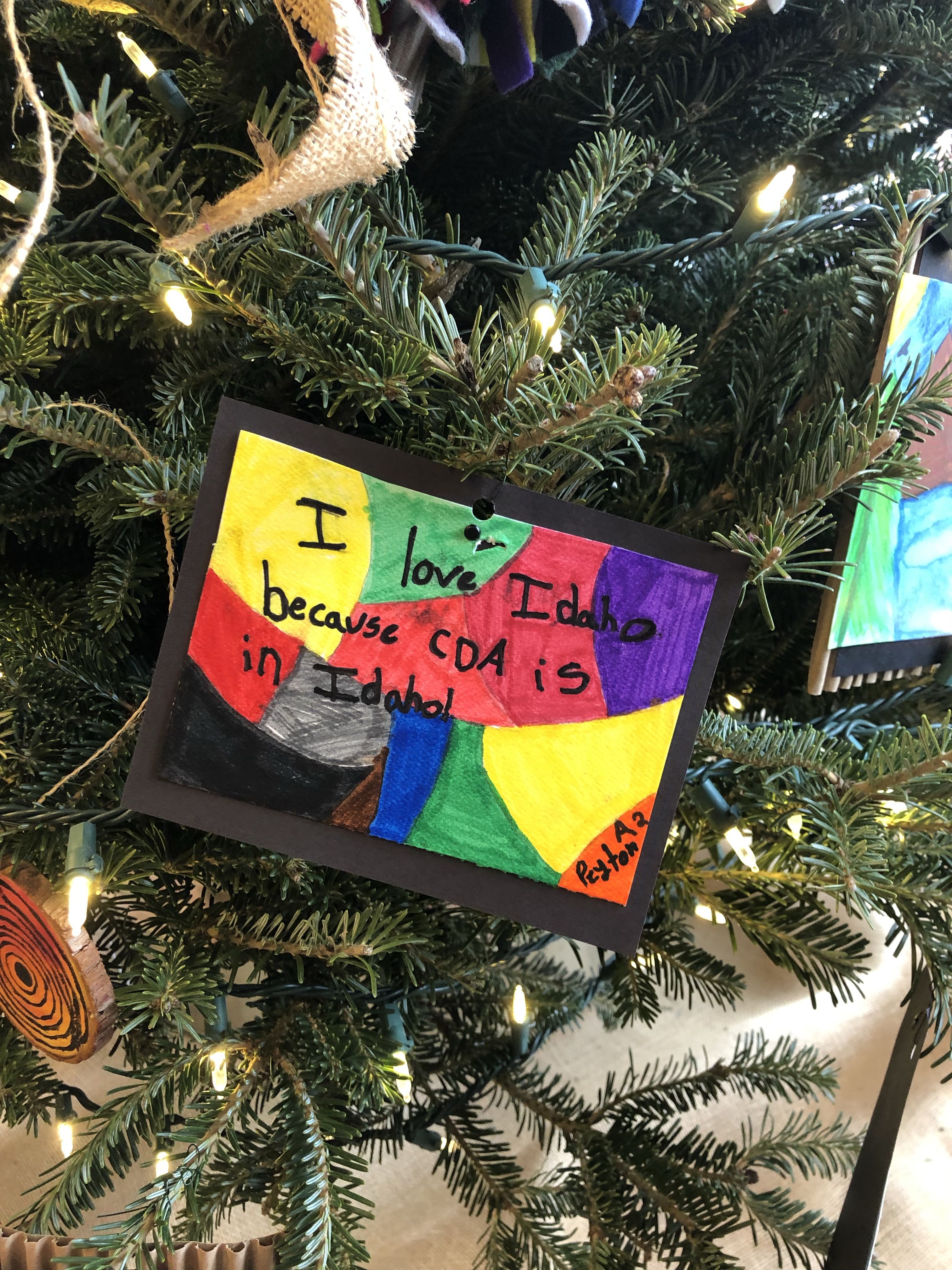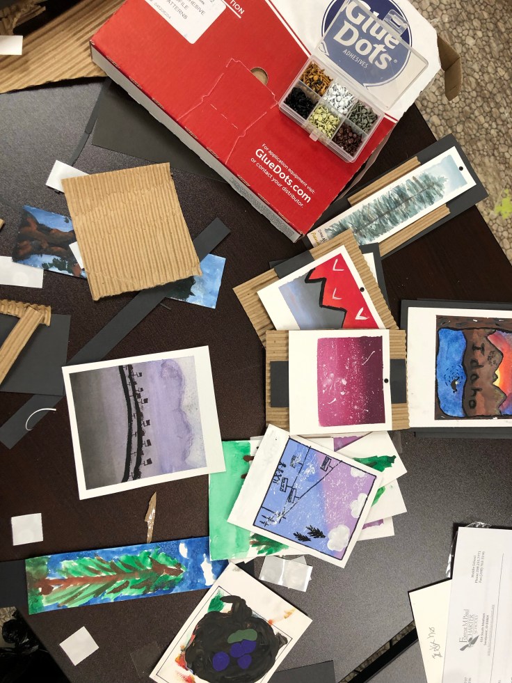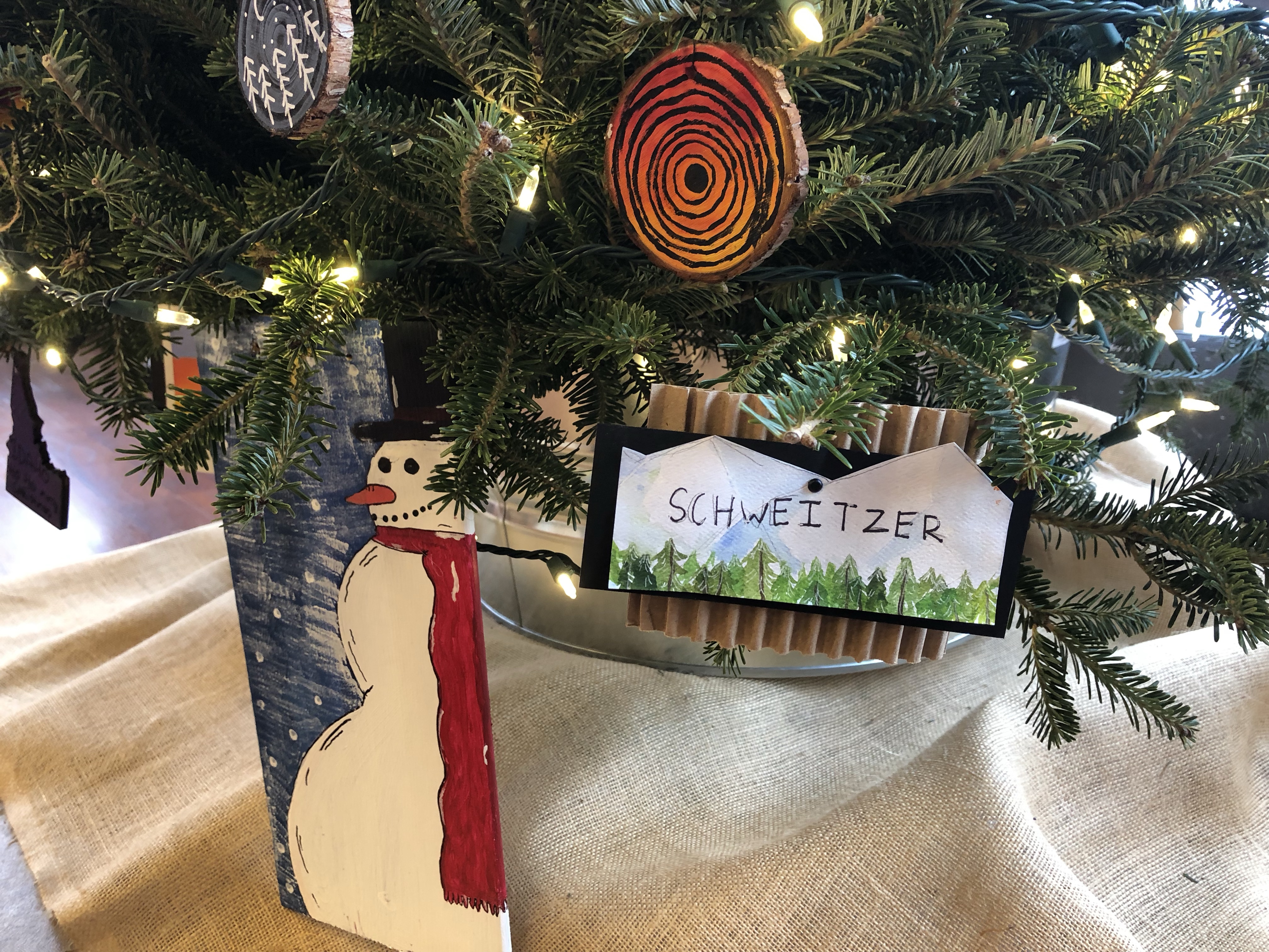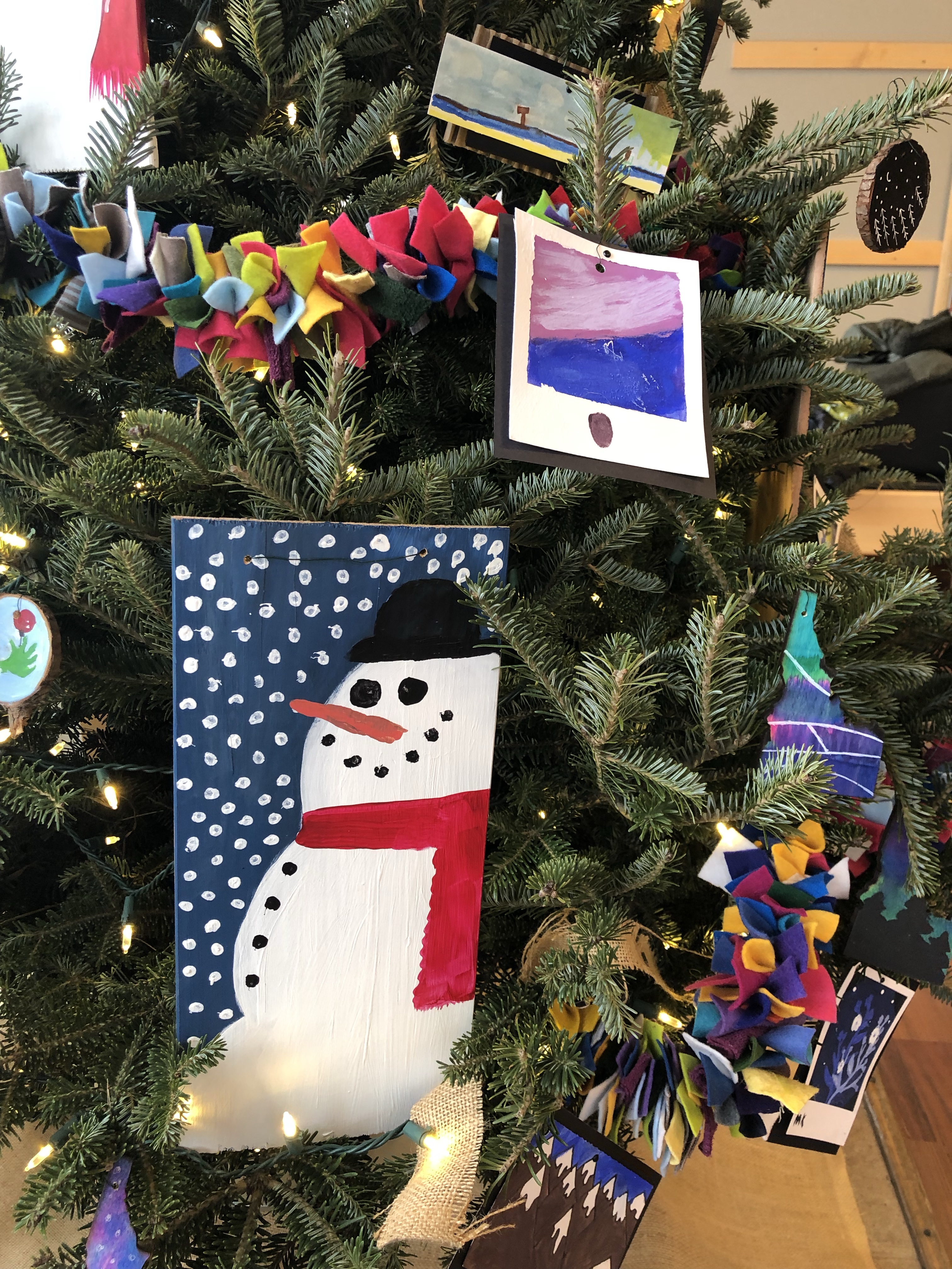 Kinderhaven’s festival of trees is again happening in virtual form. Our theme this year is “Greetings from Idaho”. I asked my middle school students to reflect on things that we love about our state and to consider what makes Idaho special to them. We then represented those ideas with fun ornaments, like handpainted “Polaroid” landscapes, garland and a unique tree topper.