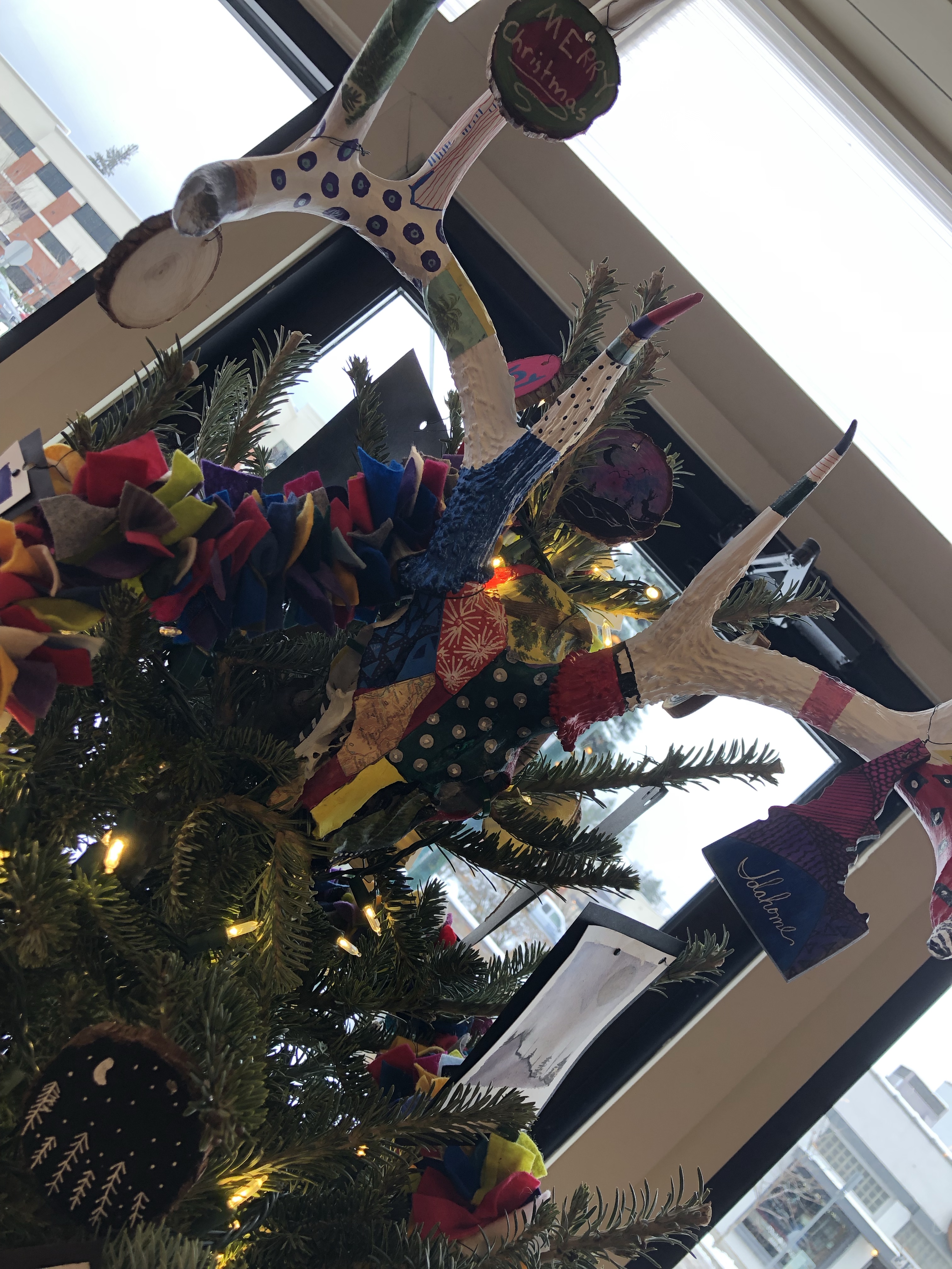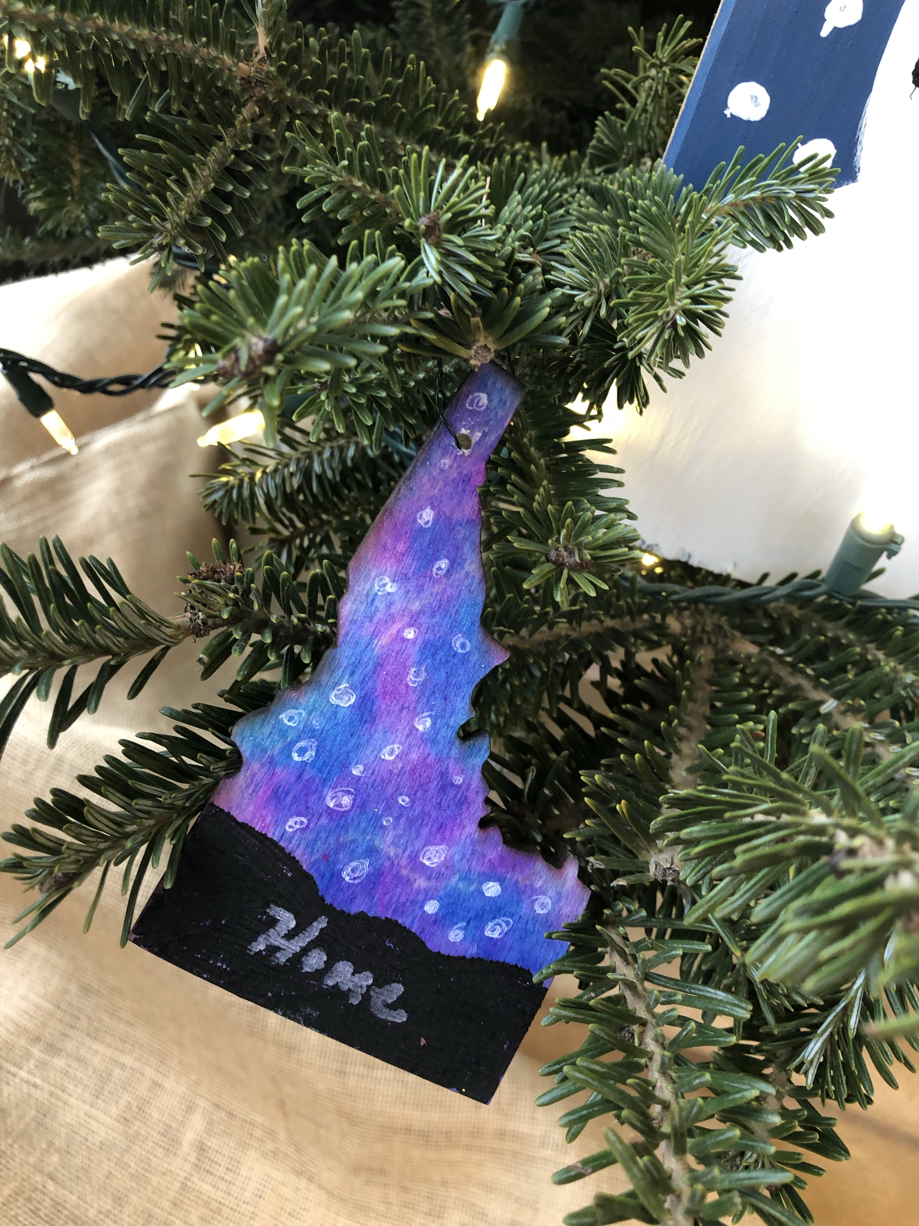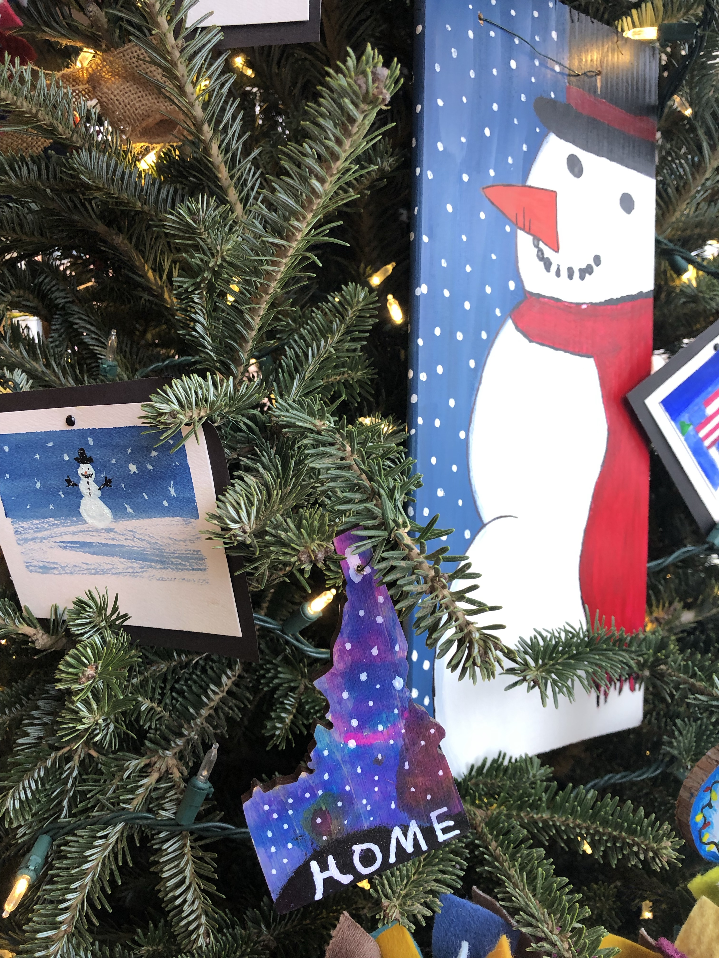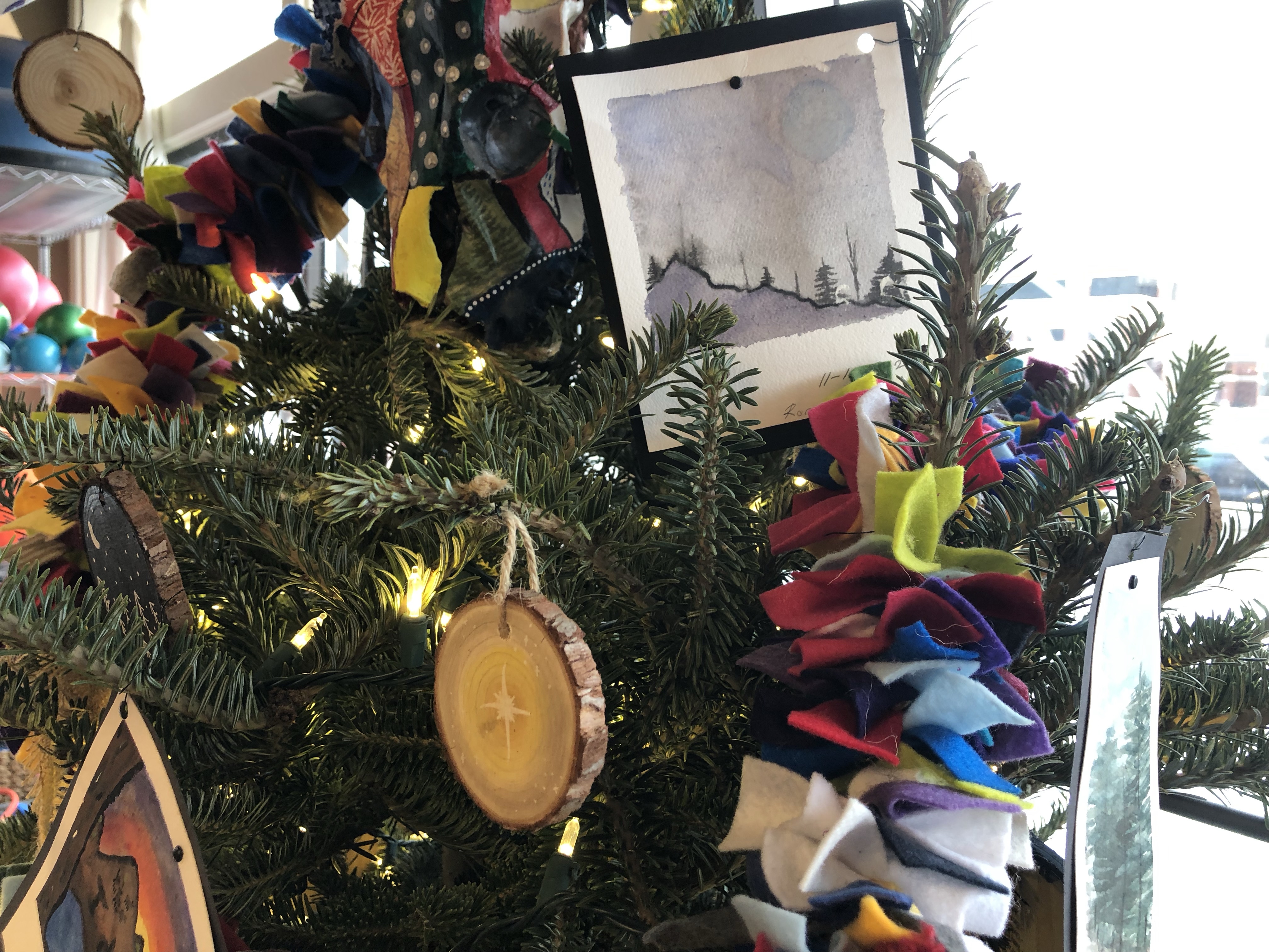 Kinderhaven’s festival of trees is again happening in virtual form. Our theme this year is “Greetings from Idaho”. I asked my middle school students to reflect on things that we love about our state and to consider what makes Idaho special to them. We then represented those ideas with fun ornaments, like handpainted “Polaroid” landscapes, garland and a unique tree topper.